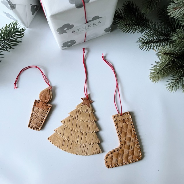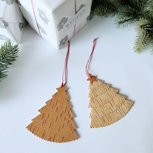 白樺樹皮の風合いを楽しめるツリーオーナメント