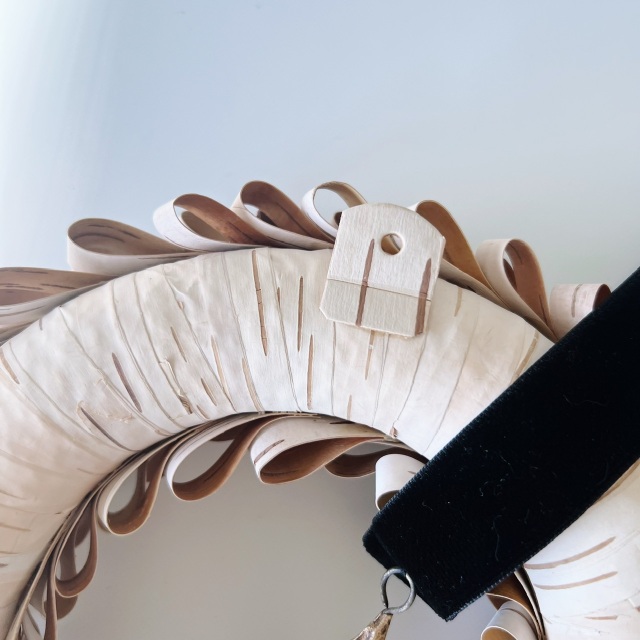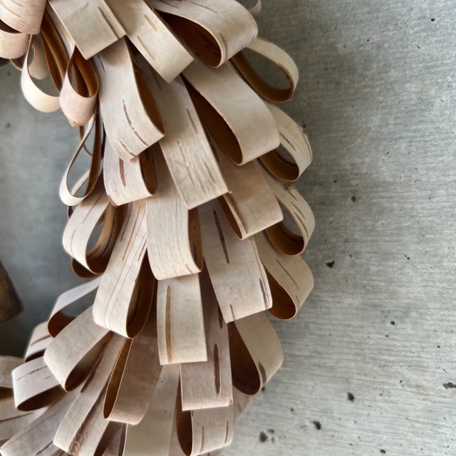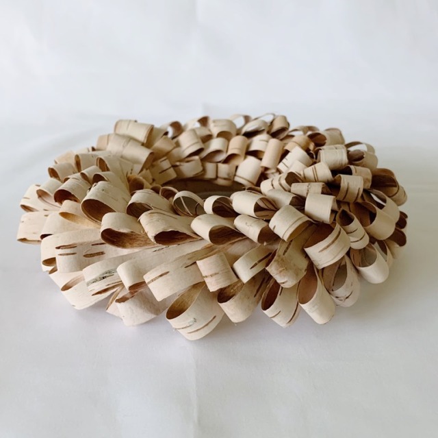 テープ状の白樺樹皮をくるっとループのようにして、リースに仕立てました。