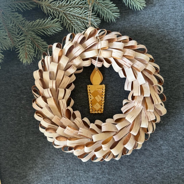 白樺の編み目で装飾されており、シンプルな形ですが、ハンドメイドの温もりあふれるオーナメント。