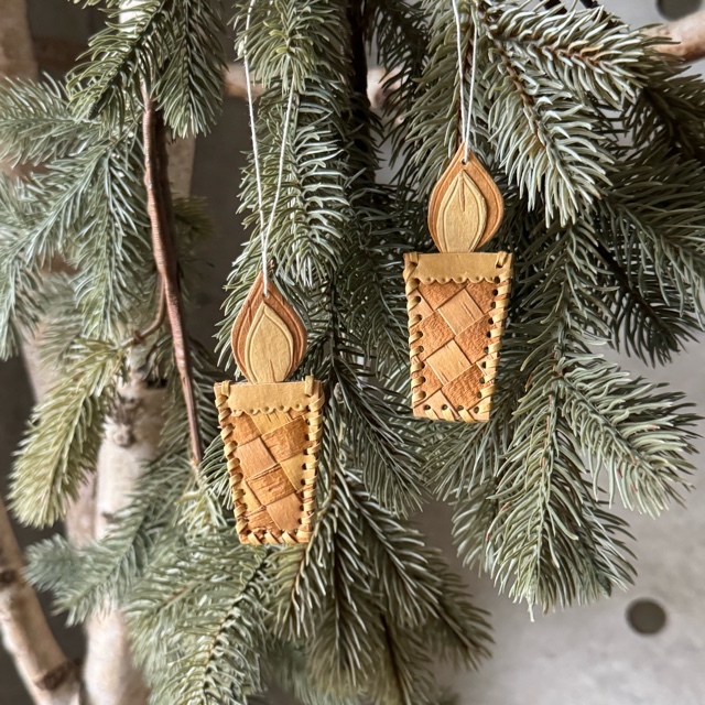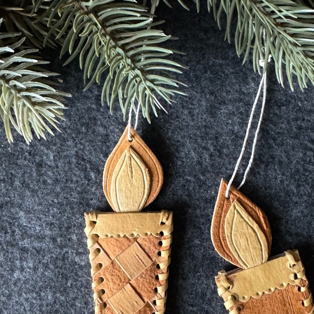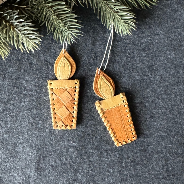 白樺樹皮で作られた、キャンドルの形のオーナメントです。