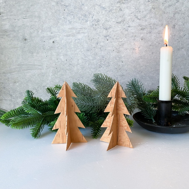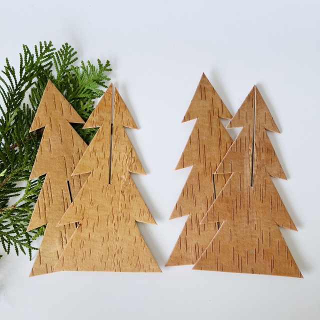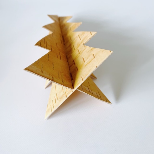 2枚のツリーのパーツを差し込んで立てる、立体的なツリーのオブジェです。