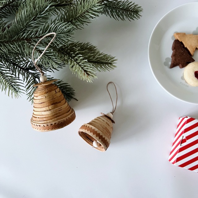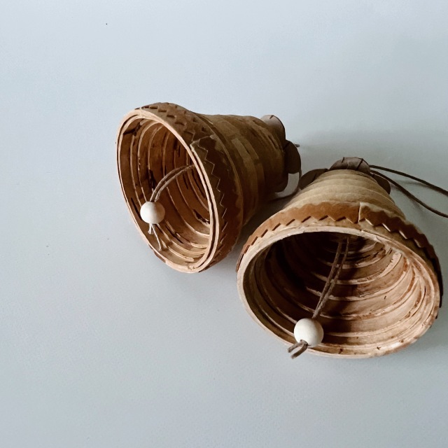 白樺の樹皮をぐるぐると巻いて作られた、職人技の光るかわいらしいベルのオーナメントです。