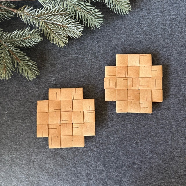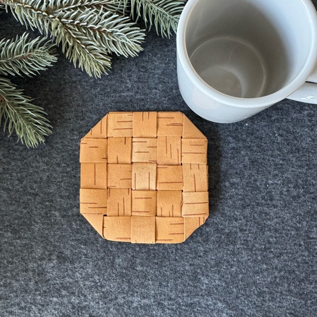 しっとりとした質感と、しなやかさが魅力の白樺樹皮で、平らに編まれた小さなマット。