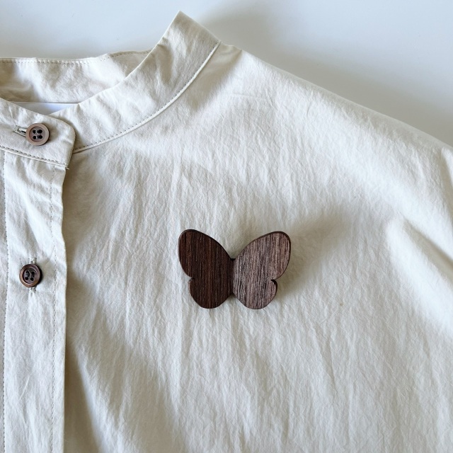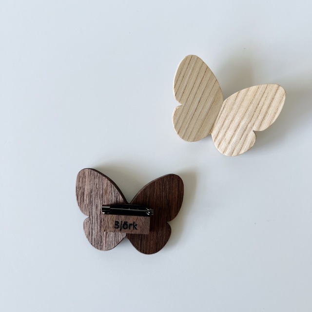 木の風合いを楽しめる、Cho-choブローチ