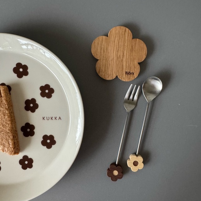 *サイズ:プレート/直径20cm×厚み2.3cm、フォーク/長さ12.5cm 軸の太さ2mm、スプーン/長さ12.2cm 軸の太さ2mm、ミニプレート/ 直径7cm 厚み0.6cm